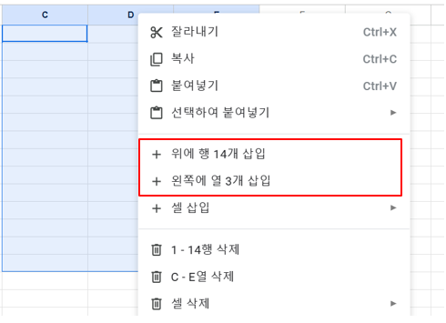 - 상단 메뉴에서 삽입 > 열 삽입을 선택할 수도 있습니다.